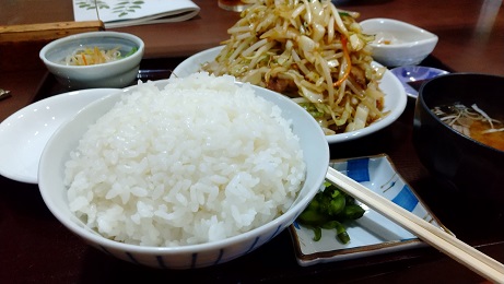 2023-08-11 盛岡方面に etc・・・ 盛岡方面のリサイクルショップ巡りに丁度、昼時なので「ももどり伝説・盛岡南店」に 何気なく註文した「野菜炒め定食」・・・ な・なんとご飯が大盛にまた更にその上ににもご飯が 半分にと云う間もなく・・・ 野菜炒めもみたらこれも山盛り・・・ 別に大盛りを頼んだ訳でもありませんでしたが 取りあえず食べることにしましたが完食は無理でした。